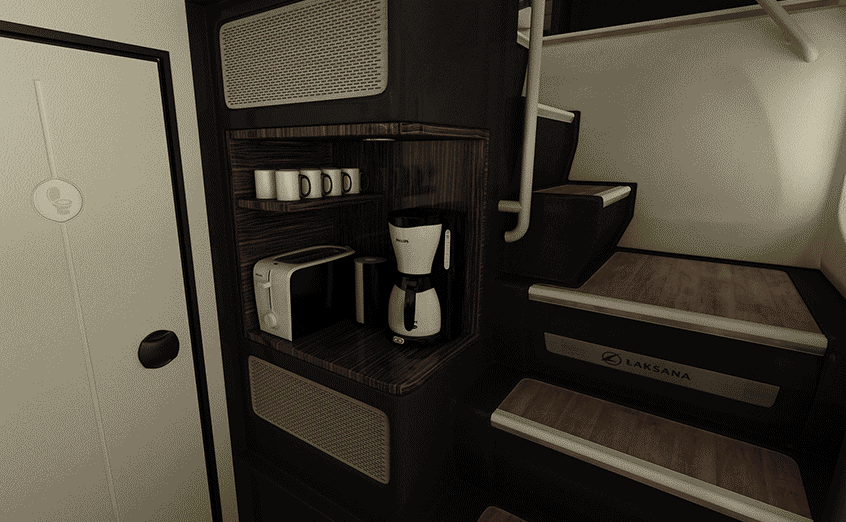 The Double Decker is equipped with a pantry to provide passengers with warm refreshment during a long trip.